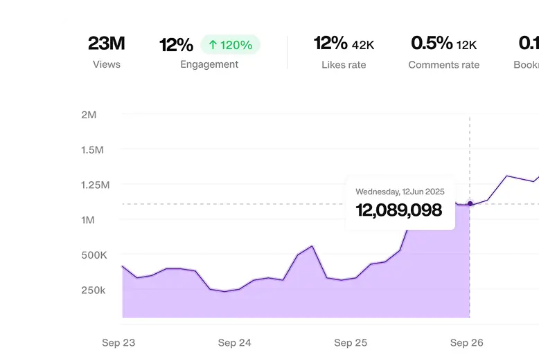 Monitor views, engagement rates, and growth metrics as they happen. Never miss a trend or viral moment.